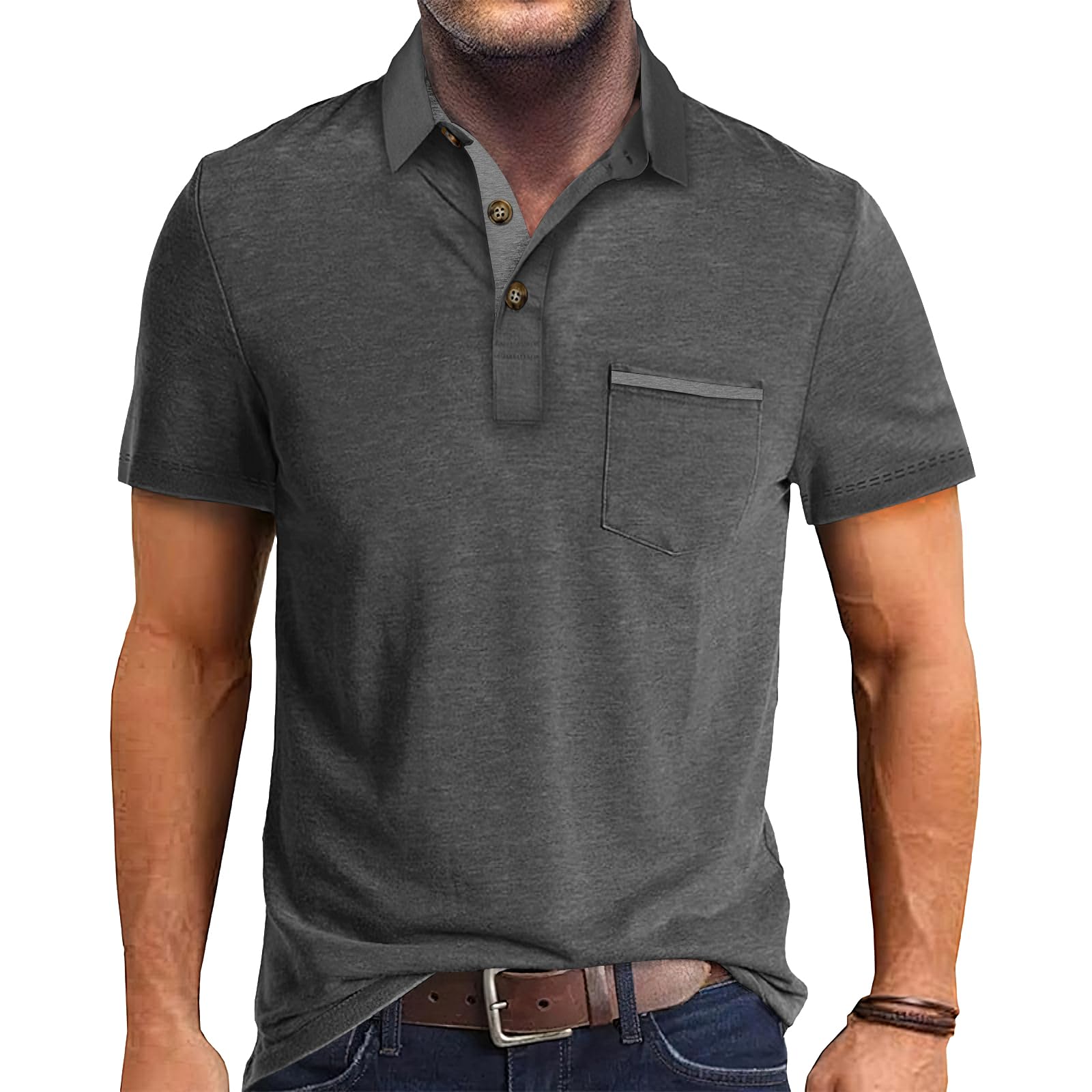 - Design:Mens short sleeve activewear polo shirt that sports and leisure; Solid color; There is a pocket on the chest; Adjustable buttons ensure maximum comfort of the neck; Slim Golf polo shirts, making people bigger and taller.